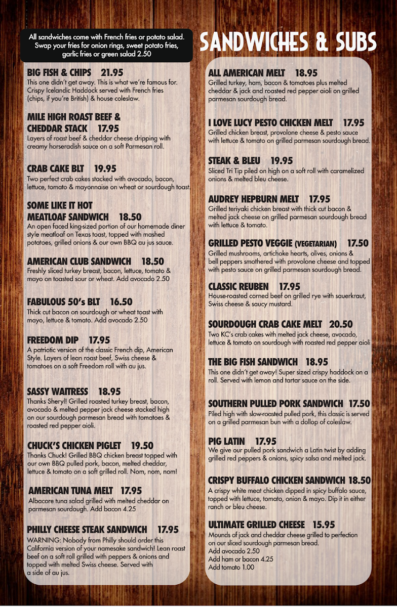 KC's American Kitchen Menu